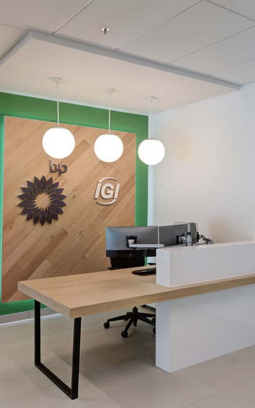 Sawtooth Concepts completed the custom cabinetry and architectural millwork for IGI Resources in Boise, Idaho. The project focused on creating a modern, functional workspace with integrated branding elements and clean, consistent finishes throughout.