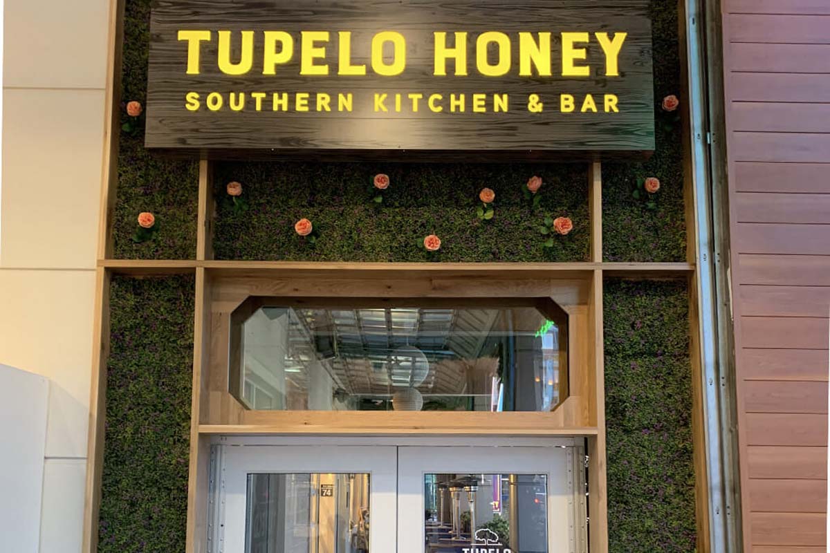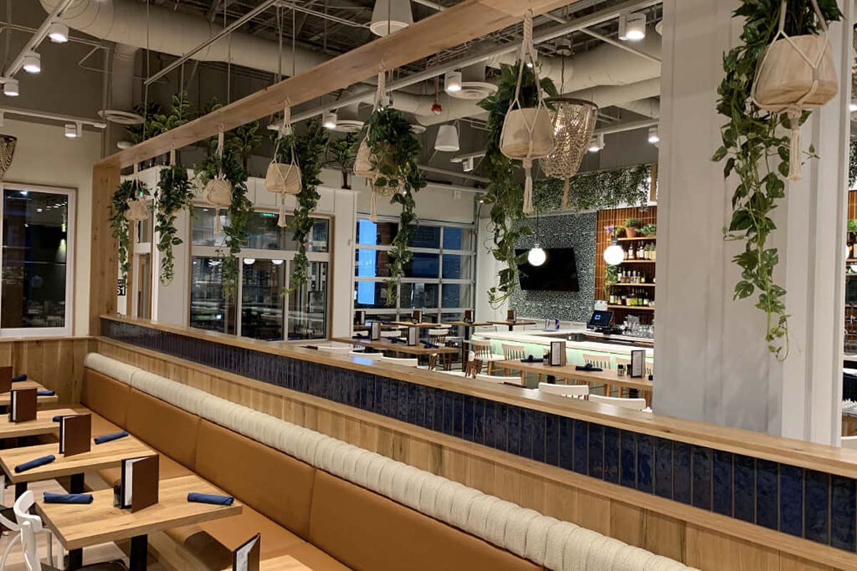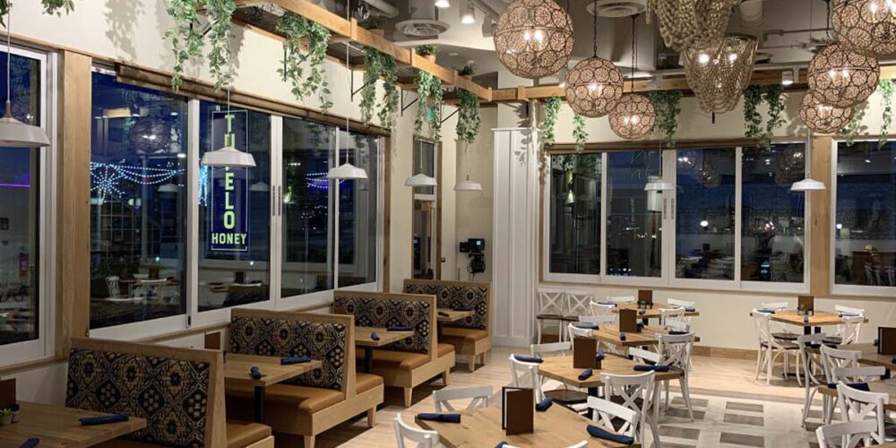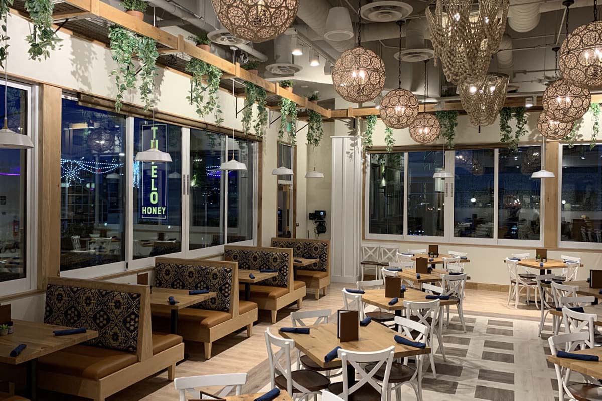 Sawtooth Concepts completed the custom cabinetry and architectural millwork for Tupelo Honey in Boise, Idaho. The project focused on creating a warm, inviting atmosphere through layered wood elements, custom seating, and detailed feature work throughout the space.